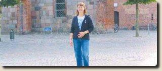 Conny Stoffer fra Det Gyldne Krus foran pladsen på Torvet i Grenaa, hvor Det Globale Morgenbord kan opleves på lørdag den 26. august i forbindelse med Global Music Festival-dagene i Grenaa. Foto: Grenaa Kommune