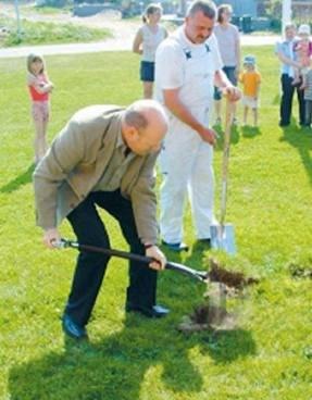 Jørgen Jacobsen, formand for aktivitetsforeningen, og Lars Møller (S), formand for Kultur- og Udviklingsudvalget i Norddjurs Kommune, havde hver sin spade, hvorefter Lars Møller lod sin hund se godt efter jordbunden.