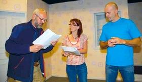 På billedet ses Ingolf Olsen, Gitte Jensen og Jens Smed i en scene fra »Ægtemand på deltid«.