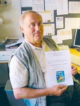 Poul Lyng-Madsen er formand for styregruppen under Sct. Georgs Gildet i Grenaa, som står bag den store dragedag ved Grenaa Naturskole. Her ses han med invitation og logo til det store friluftsarrangement.