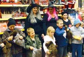 De lokale hekse gik rundt og (u)hyggede med børnene hele aften, og delte »flagermus« og »gylpklatter« ud, som børnene elskede. Nok mest fordi det smagte lidt henad vingummi og kage.