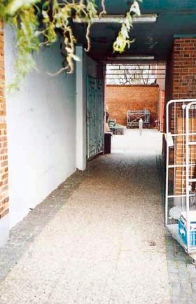 Det var i denne passage mellem Kannikegade og Østergade, at en 18-årig Grenaa-pige kæmpede for sit liv, da en voldtægtsforbryder flere gange tog kvælertag på hende. Hun fandt gitterporten i baggrunden til venstre låst og blev overmandet på vej tilbage. Billedet er taget i retning mod Østergade.