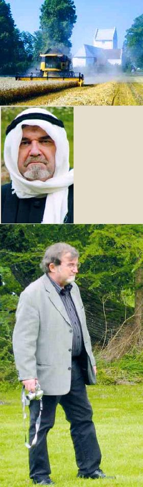 – Billedet er fra den dag, da hvedehøsten gik ind ved ›min kirke«, Lyngby Kirke pÃ¥ Djursland. Billedet er brugt i vores kirkeblad som en pÃ¥mindelse om, at takken for vort arbejdes udbytte ikke kun skal gÃ¥ til de moderne høstmaskiner. Nok kan dagens brød bringes til hus, men »Livets brød‹ udgÃ¥r fra kirken«.