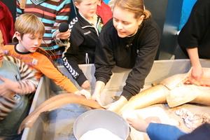 Biolog Anja Peterser i gang med obduktion af nursehajen forud for mumificeringen i oktober 2007