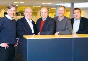 Her ses den nye Johnsen-bestyrelse: Stig Hoffland, Finn Steffensen, Troels Møller, Ove Lund og adm. direktør i Johnsen Offset A/S, Steen Johnsen.