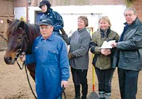 Udstyret udfordrer handicaprytternes balance, øjen- til hånd-koordinationen, og gør den ugentlige ridetime til en sjov og hyggelig oplevelse. Det omfattende udstyr består blandt andet af bolde med net, krus og holdere til vand, ringriderlanser og ringe, som alt sammen kan sættes på pinde, så det kommer i en højde, der passer til rytterne. På billedet øverst ses til højre filialdirektør Mogens Adamsen fra Sparekassen Djursland ved overrækkelsen af sponsoratet. Ved siden af ham er det ridepsysioterapeut Hanne Andersen.