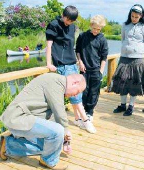 Indvielsen af fiskepladsen ved Søndre Skole foregik med manér: Elever fra Søndre Skole sørgede for korsang, skolens SFO kom padlende i kanoer og der blev grillet på livet løs. Den officielle del af indvielsen blev klaret af formanden for Kultur & Udvikling i Norddjurs Kommune, Lars Møller (S), og det gjorde han ved at skrue den sidste skrue i plankerne på den solide fiskeplads.