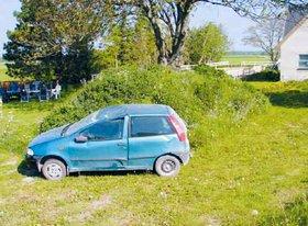 Og det gjorde det så for nylig, da en kvindelig bilist forlod et ellers lige stykke af grusvejen, for derpå at lande i Ruben Isaksens have med et ordentligt brag. Bilisten slap med knubs og skrammer. Bilen landede på taget, som derved fik et ordentligt »tryk 16«.