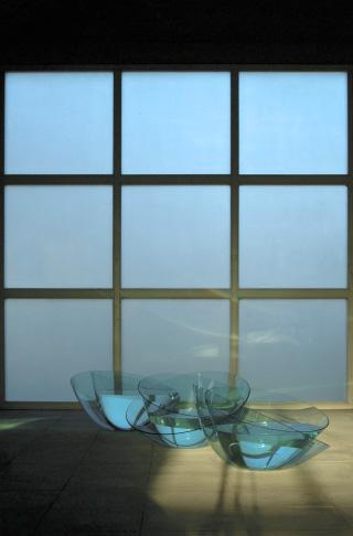 Med rene linier og masser af dagslys, der skifter med vejret, danner Glasmuseets nye udstillingsfløj den ideelle ramme for oplevelsen af Bert Frijns’ værker. Her fÃ¥r kunstnerens monumentale kar god plads og rum til at udfolde deres poetiske magi. OgsÃ¥ museumshaven inddrages i udstillingen. Her kan man opleve, hvordan det udendørs lys, vind og vejr spiller sammen med en række fritstÃ¥ende skulpturer med vand. Vandet giver liv og bevægelse til værkerne, og spejler omgivelserne gennem optiske effekter. Det er første gang museumshaven inddrages i en udstilling, hvor grænsen mellem inde og ude i den grad ophæves.