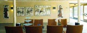 Interiør fra COK - Den Kommunale Højskole i Grenaa med nogle billeder af Dorthe Berg, som er blandt de udvalgte værker til udstillingen i Baunhøj Mølle i Grenaa. Foto: Ole Hein Petersen