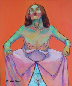 "Ej BLÅT til lyst" kalder hun billedet som er med på udstillingen BLÅ BLINK i den tidligere politistation i TINGHUSET i Ebeltoft.