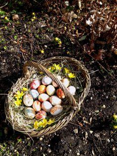 Naturens egne plantefarver er fantastiske og kan bruges til at lave flotte dekorationer på påskeæg. Æggene pakkes ind i forskellige planter, og koges over bål, så der fremkommer spændende mønstre.