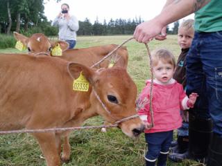 Kom og oplev et moderne landbrug. På Ellely ved Glesborg bor familien Koch. Gården drives med 135 jersey-køer. Du kan se, hvordan køerne bliver malket af mælkerobotter og du kan klappe kalvene. Ring senest dagen før på 86317140. Har man lyst til at besøge et rigtigt familielandbrug, så er gården Ellely ved Glesborg måske stedet. Her bor Birthe og Peter Koch med deres fire børn, Jesper, Malene, Steffen og Pernille. Birthe er køkkenleder på en efterskole. Peter står for driften af gården. Til gården hører der 95 hektar, hvor der dyrkes majs og græs. Børnene hjælper til med det daglige arbejde. Køerne bliver malket med to malkerobotter. Det betyder, at køer selv bestemmer, hvornår de vil malkes.