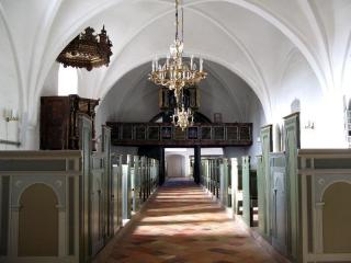 Orglet i Ålsø Kirke - bag lysekronerne.