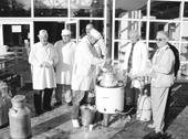 Mejeristerne, der står for oste-fremstillingen, er med i det nystiftede mejerist-laug på Dansk Landbrugsmuseum. En enkelt gang tidligere, på Æbledagen i oktober, lavede de den første ost, der nogensinde er blevet fremstillet på et museum (billedet). Denne ost har ligget på lager siden og kan fås som smagsprøver på julemarkedet.