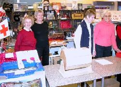 Rosa Hansen (længst til venstre) og de øvrige medarbejdere ved Røde Kors i Glesborg, der stod i tombolaen lørdag og søndag, melder om godt salg og tror på, at målet på 30.000 kroner er nået.