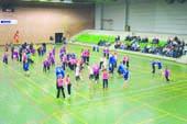 GIF Gymnastik har ca 425 aktive medlemmer, som dog ikke alle deltog i dette års opvisning, der bød på kåde kolbøtter, spændstige spring og vanskelige vejrmøller på alle niveauer og alderstrin - lige fra mor/far-barn-hold til flere store børnehold. Foreningens eget 40 mand høje opvisningshold »Grenaa Gymnasterne« afsluttede eftermiddagen med en med utrolig flot opvisning af deres program, der omfatter en boldserie, flere rytmeserier samt vilde spring på måtte og trampolin.