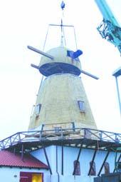 – Det forventes, at det totale forløb omkring opsætning og montage vil strække sig over 4-6 timer, såfremt der ikke skulle tilstøde komplikationer. Efterfølgende vil vingerne blive »stroppet« og låst i kors-position (vandret/lodret). Desuden vil der være placeret lægt gennemstukket hattehjulet i det indre, og kværnstenene vil være lagt sammen, således, at der er en effektiv bremse på alle bevægelige dele. Under operationen vil al adgang til møllestedet være forbudt. Det påregnes at kunne genåbne for offentlig adgang omkring kl. 18.00, hvor kun den afmærkede »trampesti« nord om komplekset og frem til søndre magasinsfløjs østport, vil være til rådighed. Der vil ikke være parkeringsmuligheder på møllestedet, slutter Bertil Larsen.