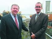 Havnedirektør Henning Laursen (tv) og adm. direktør i Uniscrap A/S, Per Lykke Thomsen, glæder sig begge to over en aftale, der er ensbetydende med, at virksomheden flytter sin hovedafdeling til Grenaa. Havnen får en god kunde, mens Uniscrap får mulighed for at vokse.