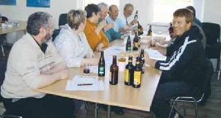Og der var virkelig noget for enhver smag. Tim startede med at fortælle om hans baggrund for at være aftenens taler, og derefter sendte han prøver rundt på humle, som deltagerne skulle lugte til. Der kom mange sjove ansigtsudtryk, da humle ikke lige lugter som man skulle tro. Efter den korte præsentation, skulle ganerne gøres våde. Den første øl smagte af vand, kommenterede en af damerne, men hun skulle hurtigt få andet end vand at smage. Der kom øl så sort som Fjellerup-kaffe, øl med honningsmag, og øl som smagte af tjæret tovværk. Efterhånden som øllene kom på bordet, blev der kommenteret og noteret på sedlerne med beskrivelserne af aftenens udvalg. Bl. a. øllenes holdbarhed blev diskuteret. Én øl kunne holde i 1 måned, mens en anden øl kunne holde i 5 år. En af de kvikke herrer blandt deltagerne mente nu ikke, at den ville holde så lang tid i Fjellerup....! I løbet af aftenen voksede køen til toilettet. Da den sidste øl var prøvesmagt var det muligt at bestille øl til en specialpris i aftenens anledning. Brugsuddeleren havde ud over at sponsorere aftenens øl, også sat en ølgavekurv på højkant. Den heldige vinder blev Puk Jensen. Den mest eftertragtede øl blandt de 40 deltagere var øllen fra Fur. Der blev efterfølgende snakket om at arrangere en tur til bryghuset på Fur, og Fjellerup Borgerforening vil snarest muligt melde tilbage, om det kan lade sig gøre.