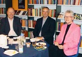Lars Møller, Johan Legarth og Birgit Årsnes hygger sig ved sidstnævntes afskeds-receptionen i sidste uge. Pr. den 1. januar forlader hun efter eget ønske stillingen som bibliotekschef i Norddjurs Kommune.