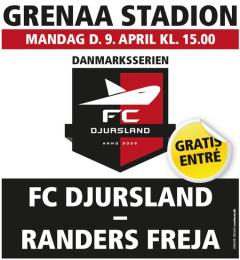 Kampen står mellem Herre-DS pulje 3, FC Djursland mod Randers Freja. - Kom og giv hjemmeholdet opbakning. - Jan Petersen styrer første Banko på stadion. Dørene åbnes allerede kl. 13.45, og der spilles fra kl. 14.00. Jan Petersen bliver første opråber af numrene i Banko når der for første gang spilles på Tribunen. - Kom og støt en god sag. Kun 20 kr. pr. plade, - og masser af fede præmier.