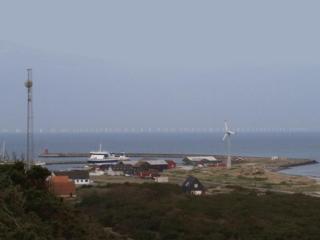Således skulle udsigten til Havmølleparken se ud fra Anholt Havn, ifølge Energistyrelsens visualiseringsraport.