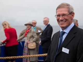 Flemming Thomsen, med statsminister, dronning og prinsegemal i baggrunden.