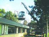 Første etape af arbejdet startede som allerede nævnt med at hejse en minigraver ind over hotellets tag med Niels Svenssons store 120 t/meter kran, hvorefter det hårde arbejde kunne begynde med opgravning og grovsortering af planteaffald.
