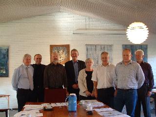 Den politiske styregruppe for etablering af Norddjurs Kommune fra venstre ses Gert Schou, borgmester i Grenaa, Lars Sørensen, kommunalbestyrelsesmedlem i Sønderhald, Torben Jensen borgmester i Rougsø, Svend Brandstrup Hansen, viceborgmester i Grenaa, Kirsten Wyrtz, borgmester i Sønderhald, Jens P. Jellesen, borgmester i Nørre Djurs, Malte Larsen, kommunalbestyrelsesmedlem i Nørre Djurs og Ivan Hammer Sørensen kommunalbestyrelsesmedlem i Rougsø.