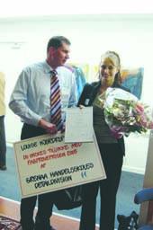 Eleven er Louise Hjordrup Nielsen som har gennemført sin elevuddannelse på Grenaa Handelsskole. Louise er til daglig ansat i Bilka Slagelse. Louise Hjordrup Nielsen modtog d. 12 oktober ved kåringen af Detailhandlens Fagprøvepris en flot 2. plads hos Dansk Handel & Service i København