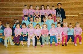 Instruktøren på holdet hedder Mette Mikkelsen, og hun og puslingeholdet er naturligvis super-glad for de flotte T-shirts fra »Ælle Bælle«.
